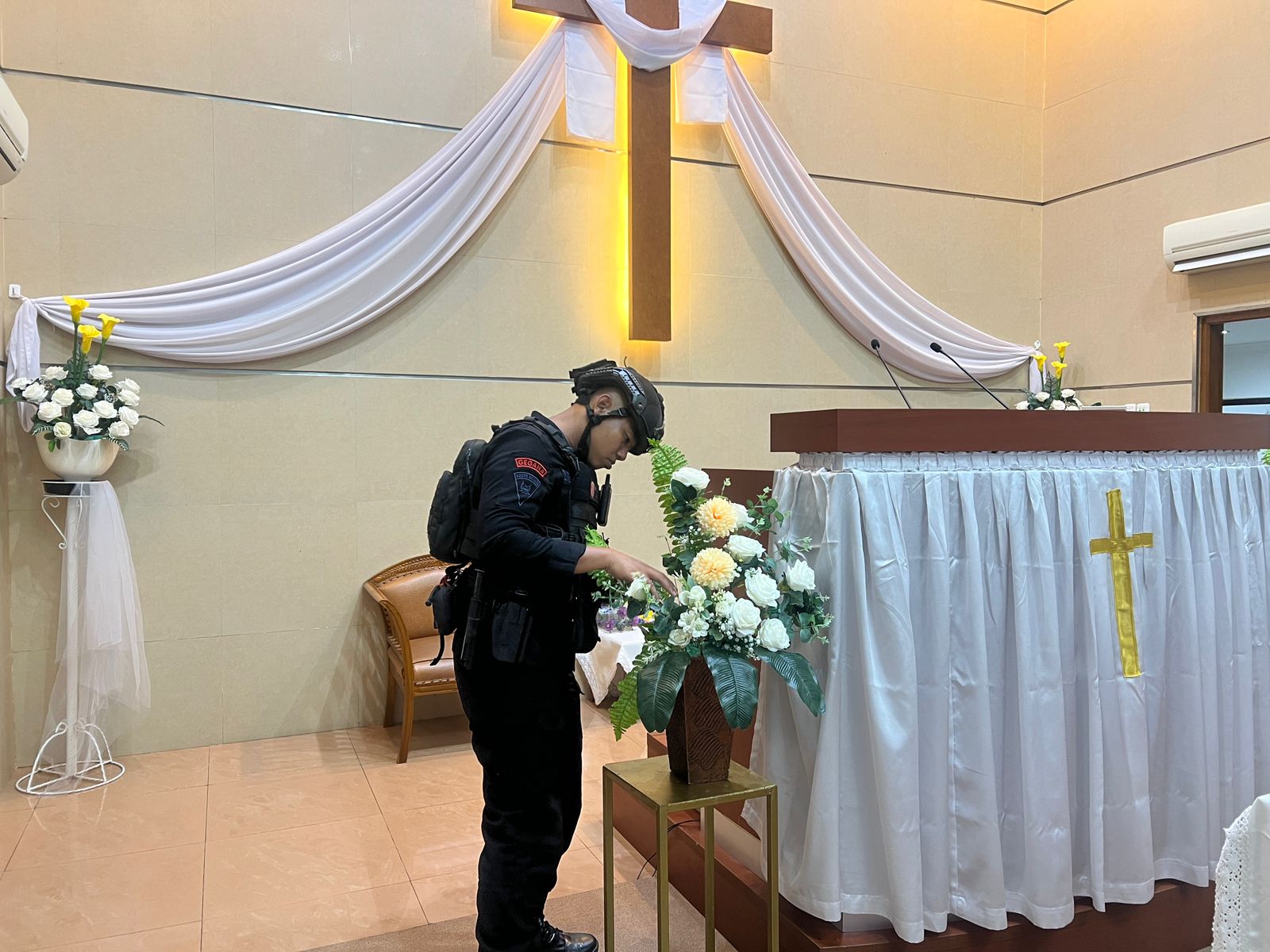 Salah satu Unit Jibom Detasemen Gegana yang dipimpin oleh AKP Edison S.IP melakukan sterilisasi di Gereja HKBP, Gereja GPDI, dan beberapa gereja lainnya. Sterilisasi ini bertujuan untuk memastikan tidak ada ancaman keamanan dan keselamatan bagi umat yang beribadah.