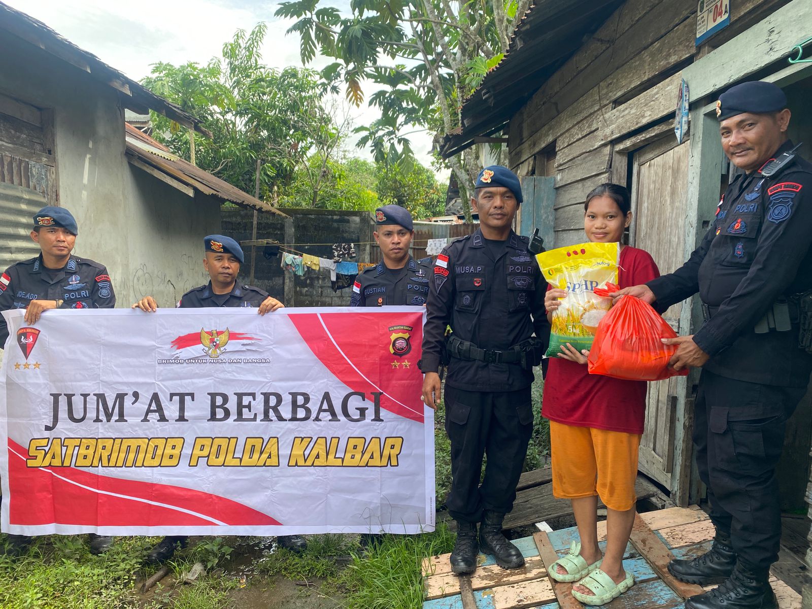 Kegiatan Jum’at Berbagi ini merupakan salah satu kegiatan rutin yang dilaksanakan oleh Satbrimob Polda Kalbar setiap minggunya dan kegiatan ini merupakan salah satu bentuk nyata hadirnya Polri ditengah-tengah masyarakat dan salah satu cara Polri untuk mempererat tali silaturahmi dengan masyarakat.