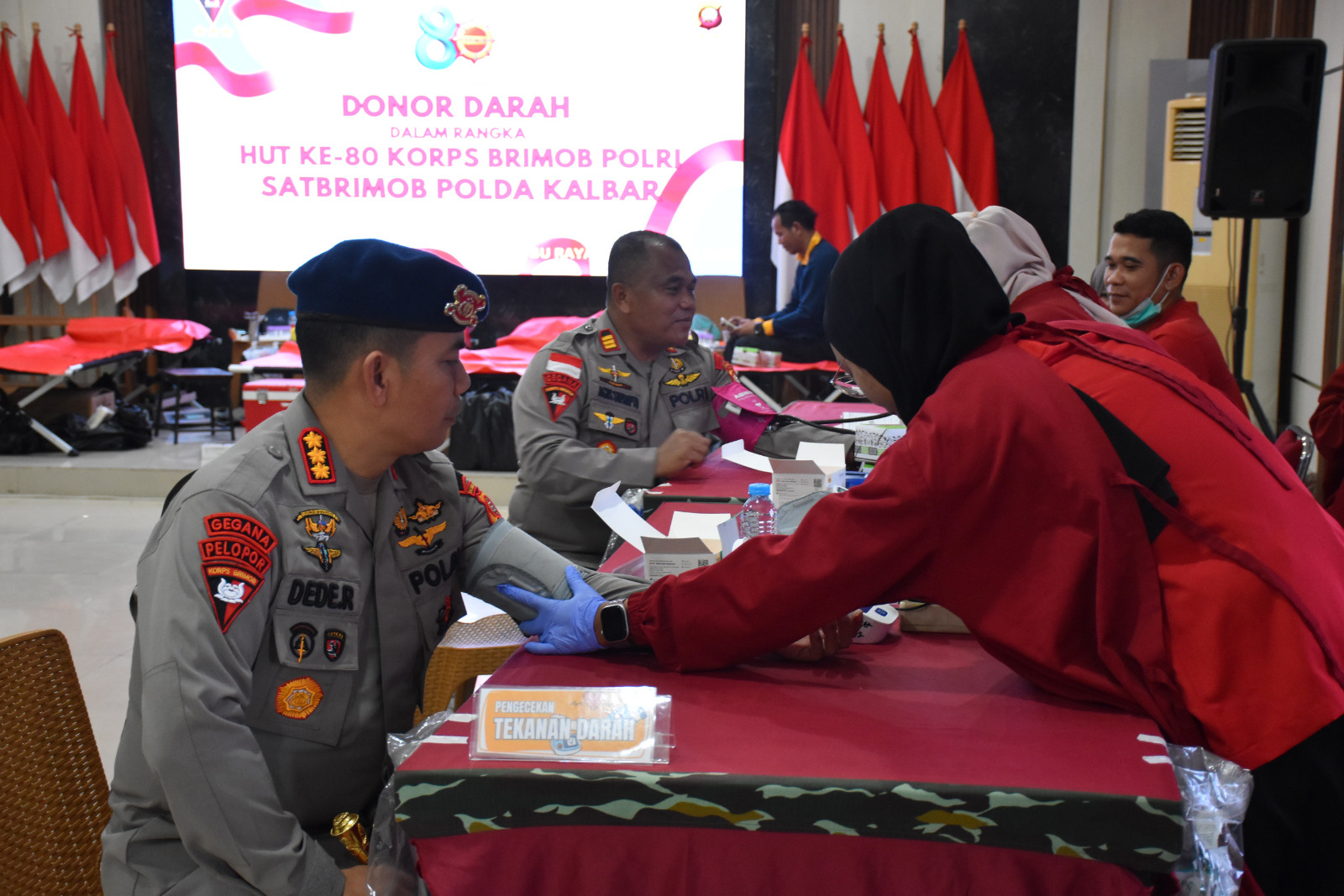 “Donor darah yang kami laksanakan hari ini merupakan salah satu rangkaian kegiatan yang diselenggarakan oleh Satbrimob Polda Kalbar dalam rangka menyambut Hut Ke-80 Korps Brimob Polri. Kami juga berterimakasih kepada rekan-rekan TNI dan Polda Kalbar yang telah berpartisipasi dikegiatan donor darah hari ini dan harapan kami semoga darah yang rekan-rekan sekalian donorkan ini bisa bermanfaat bagi mereka yang membutuhkan. Kegiatan Bakti Kesehatan donor darah ini selain dalam rangka menyambut Hut Ke-80 Korps Brimob Polri juga merupakan bentuk nyata hadirnya Polri ditengah-tengah masyarakat terutama mereka yang sedang membutuhkan bantuan darah dan merupakan ajang untuk mempererat sinegritas TNI-Polri” ucap Dansatbrimob Polda Kalbar Kbp Dede Rojudin, S.I.K., M.H..