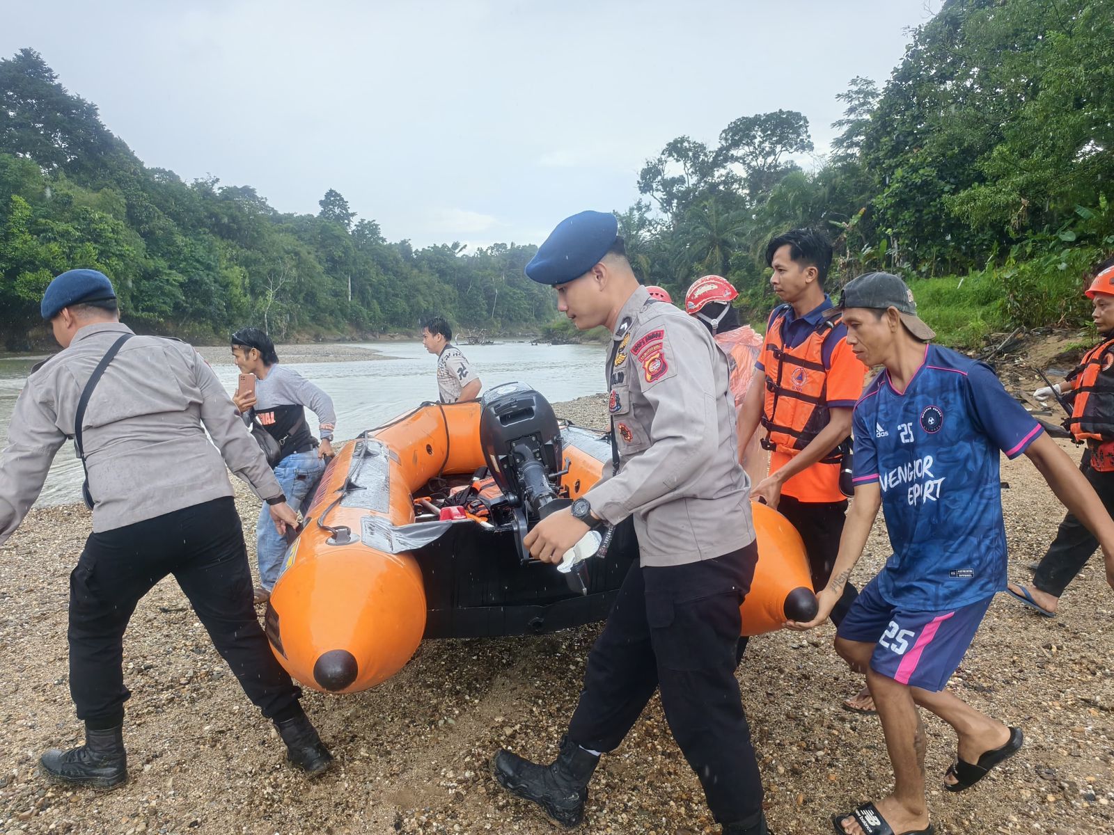 Satbrimob Polda Kalbar kembali menunjukan respon cepatnya dengan berhasil mengevakuasi korban tenggelam di Sungai Sekayam Kabupaten Sanggau. Jum’at (06/02/26).