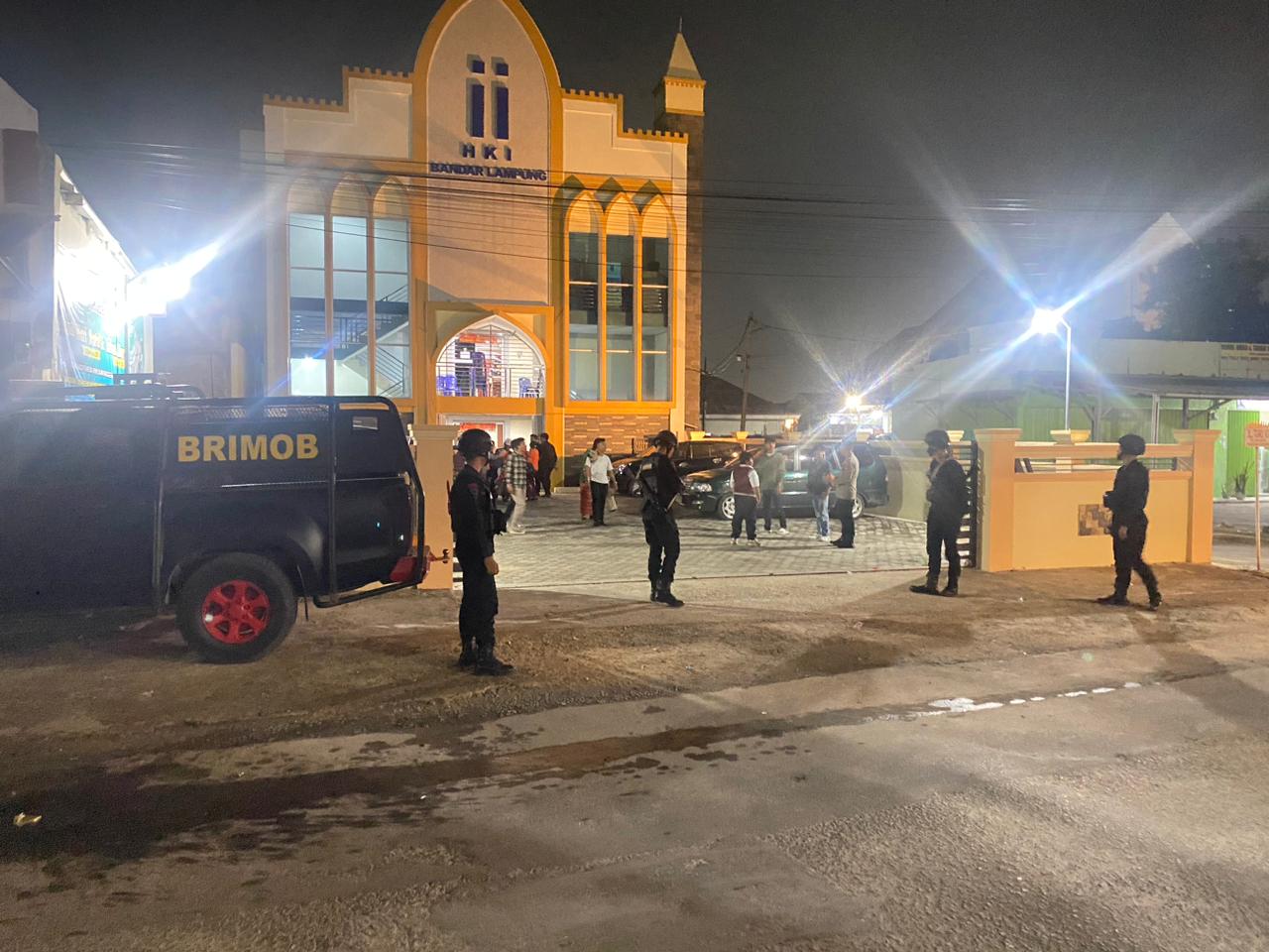 Satbrimob Polda Lampung Hadir Jamin Keamanan Ibadah Malam Natal 2025.