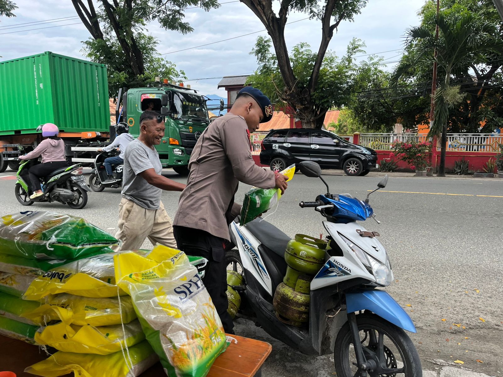 Satbrimob Polda Sulawesi Tengah turut ambil bagian dalam mendukung program pemerintah melalui kegiatan Gerakan Pangan Murah dengan penjualan beras SPHP kepada masyarakat. Kegiatan ini dilaksanakan sebagai upaya membantu menjaga stabilitas harga pangan sekaligus meringankan beban masyarakat dalam memenuhi kebutuhan pokok.