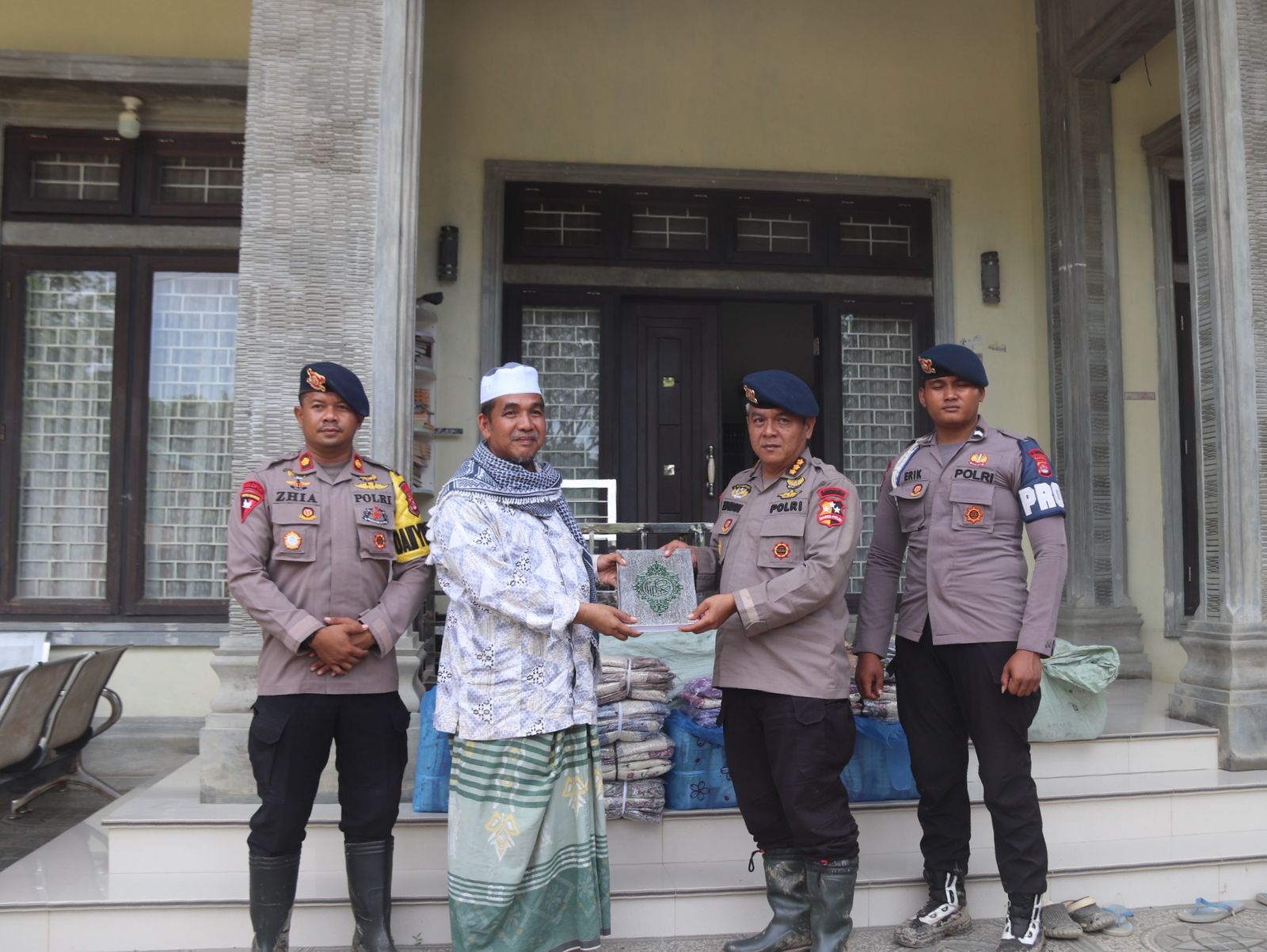 Aceh Utara – Dalam rangka Operasi Aman Nusa II Tahun 2025 di wilayah Aceh Utara–Lhokseumawe, Satgas Operasi Aman Nusa II 2025 BKO SAR Polda Aceh menyalurkan bantuan sosial keagamaan berupa Al-Qur’an dan mukena kepada sekolah dan dayah yang terdampak banjir di Kabupaten Aceh Utara, Senin (19/1/2026).