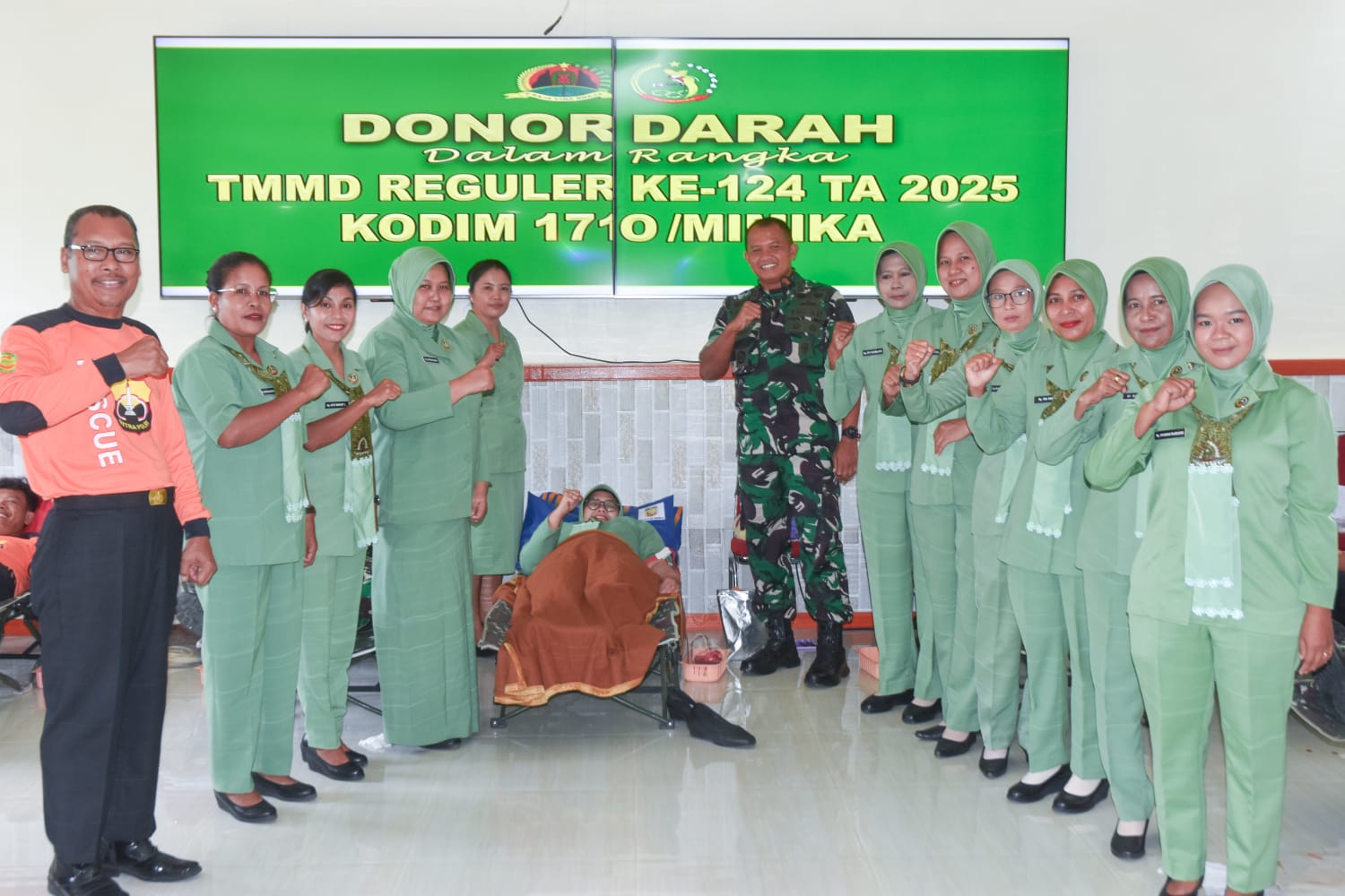 Timika – Satgas TNI Manunggal Membangun Desa (TMMD) menggelar kegiatan donor darah sebagai bagian dari program kemanusiaan di tengah pelaksanaan TMMD ke-124 Kodim 1710/Mimika. Kegiatan ini berlangsung di Makodim 1710/Mimika, jalan Agimuga Mile 32, Distrik Kuala Kencana, Kab. Mimika. Jumat (30/5/2025). Kegiatan donor darah ini merupakan bentuk kepedulian sosial Satgas TMMD terhadap kebutuhan stok darah di Palang Merah Indonesia (PMI) serta upaya nyata dalam membantu sesama.