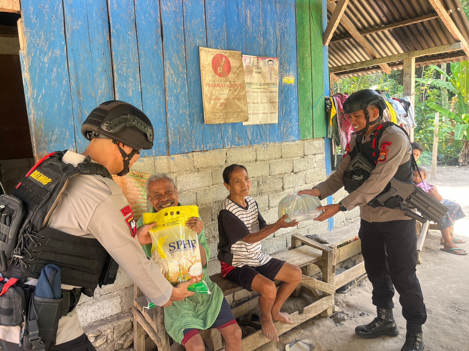 Tak sekadar melakukan patroli, personel juga menunjukkan kepedulian sosial dengan menyalurkan bantuan sembako kepada warga kurang mampu. Aksi tersebut menjadi bentuk nyata kehadiran Brimob tidak hanya sebagai penjaga keamanan, tetapi juga sebagai pelindung dan pengayom masyarakat.