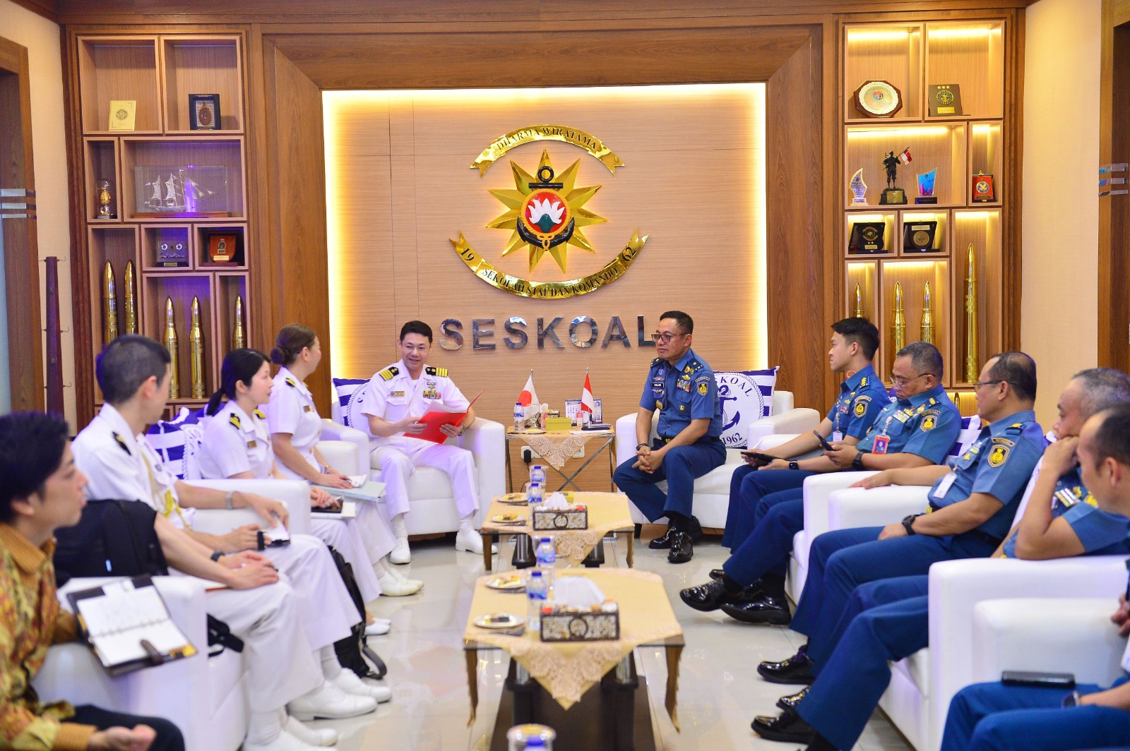 Komandan Sekolah Staf dan Komando Angkatan Laut (Danseskoal) Laksamana Muda TNI Ariantyo Condrowibowo diwakili Kepala Pusat Pengkajian Maritim (Kapusjianmar) Seskoal Laksamana Pertama TNI Salim, S.E., M.Phil., M.Tr.Opsla. menerima kunjungan kehormatan Dekan Departemen Kajian Strategis, Japan Maritime Self Defense Force (JMSDF) Command and Staff College Captain (N) Nakayama Nobutaka beserta rombongan, bertempat di ruang transit gedung Samadikun Seskoal, Cipulir, Kebayoran Lama, Jakarta Selatan, Selasa (24/02/2026).