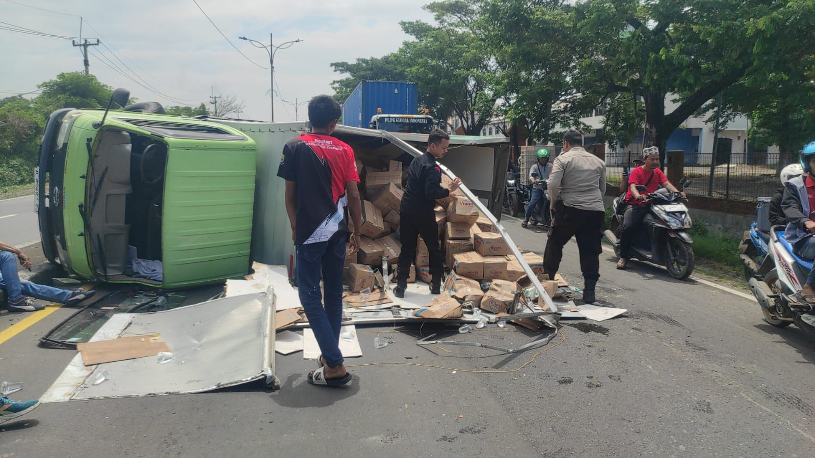 Kecelakaan tunggal tersebut melibatkan satu unit mobil box merek Hino bernomor polisi D 8949 EJ yang mengangkut air mineral. Berdasarkan informasi di lapangan, insiden terjadi akibat pecah ban sehingga kendaraan kehilangan kendali dan mengalami kecelakaan di badan jalan. Beruntung, dalam kejadian tersebut tidak terdapat korban jiwa. Sopir dan kenek mobil box dinyatakan selamat.