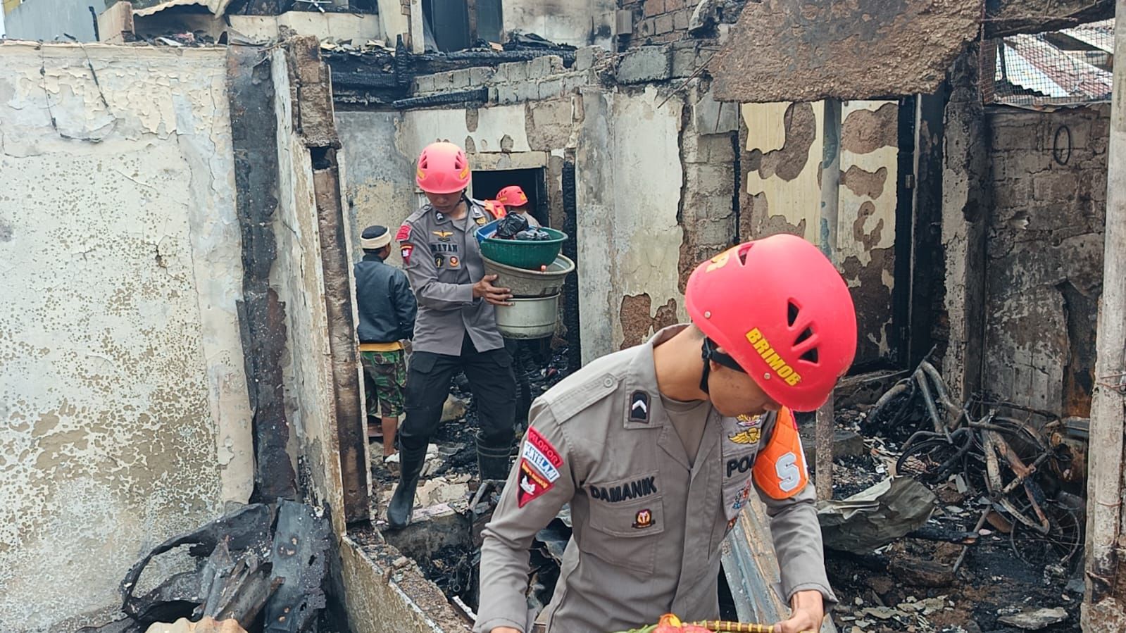 Tak hanya itu, pada pukul 09.32 WIB, tim juga melakukan pengecekan serta pendataan warga yang terdampak kebakaran bersama anggota Polsek Pacet, guna memastikan kondisi dan kebutuhan para korban. Upaya kemanusiaan terus berlanjut hingga pukul 10.11 WIB dengan kembali melaksanakan pembersihan puing bersama warga setempat sebagai bentuk gotong royong dan empati terhadap masyarakat.