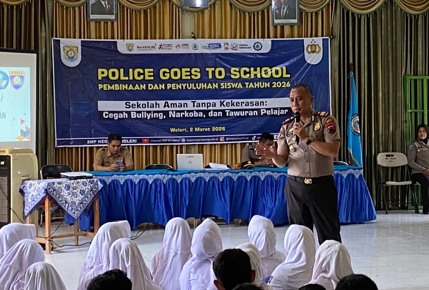 KENDAL – Dalam upaya menciptakan lingkungan pendidikan yang sehat, aman, dan berkarakter, Sat Binmas Polres Kendal bekerja sama dengan Dinas Pendidikan Kabupaten Kendal menggelar kegiatan pembinaan dan penyuluhan di SMP N 1 Weleri. 2 Maret 2026.