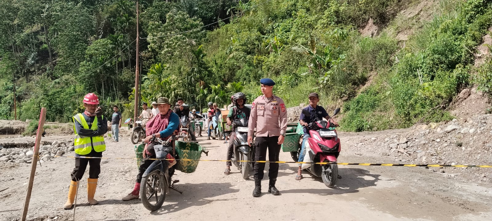 Dalam kondisi medan yang sulit dan cuaca yang tidak menentu, personel Brimob tetap sigap turun ke lokasi untuk memastikan kelancaran arus kendaraan serta keselamatan masyarakat yang melintas. Upaya pengaturan lalu lintas dilakukan secara maksimal guna menghindari kemacetan serta potensi kecelakaan di jalur yang terdampak.