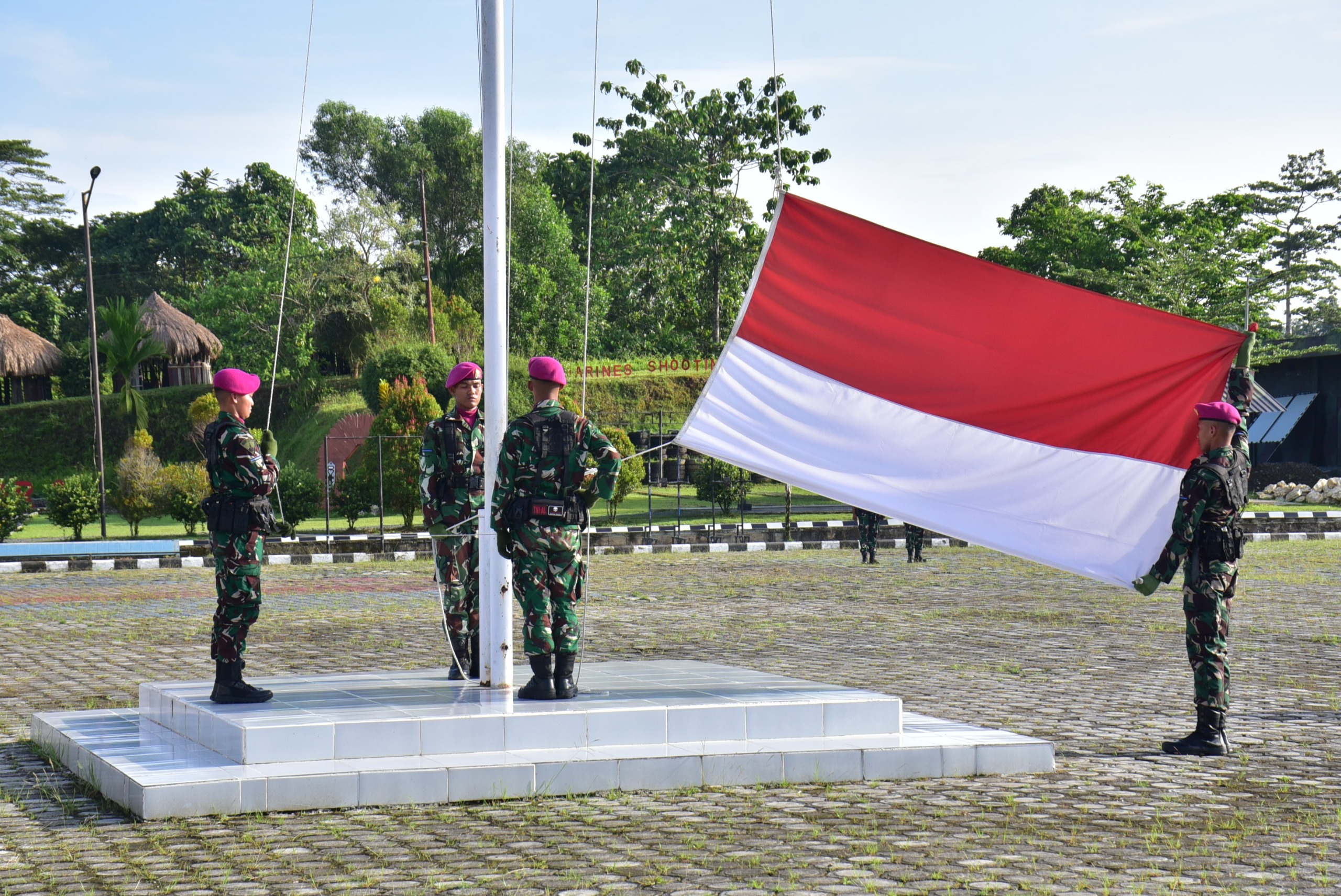 Teguhkan Semangat Juang Dan Cinta Tanah Air, Prajurit Denmako Pasmar 3 Laksanakan Upacara Bendera 17-an