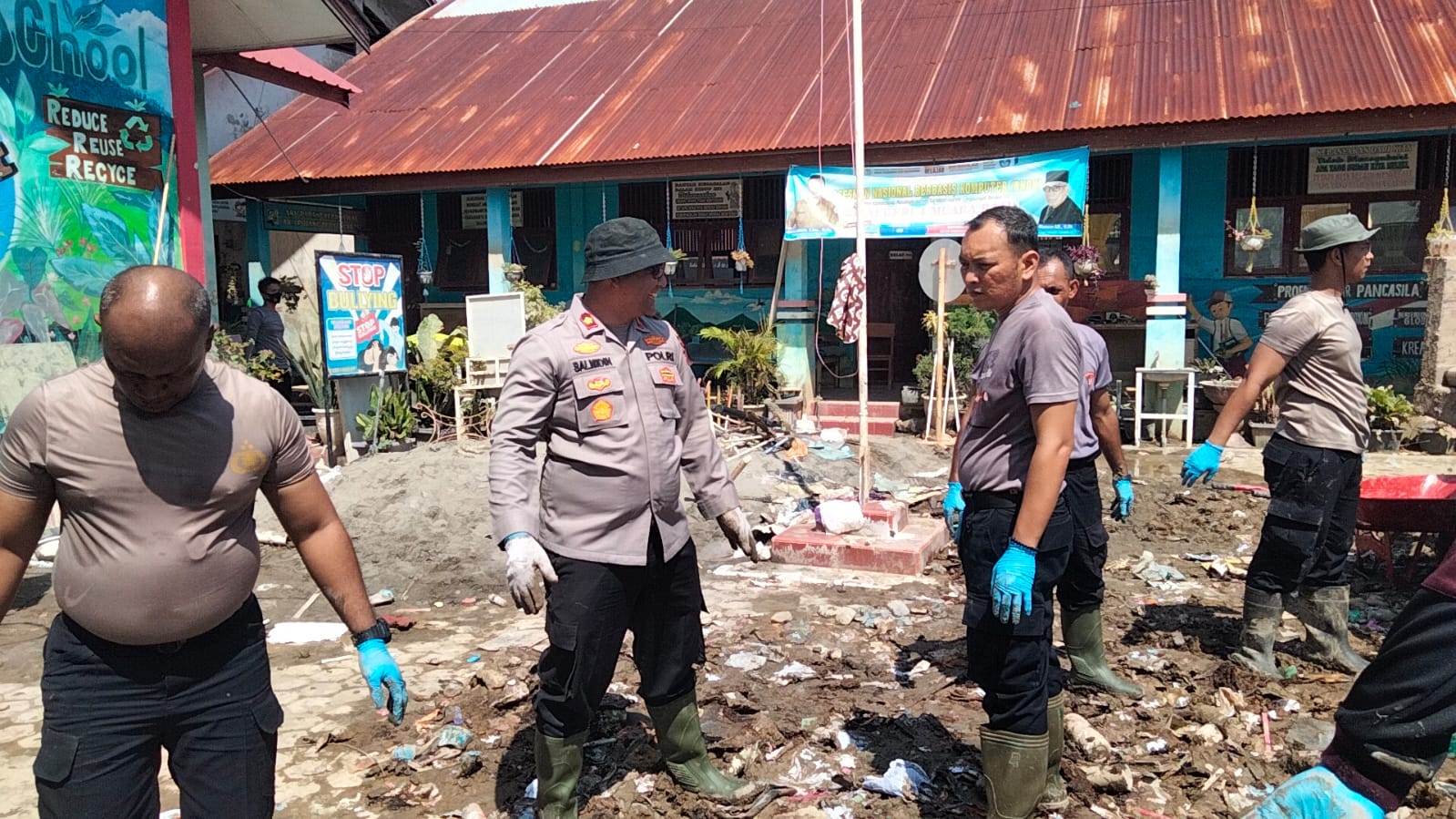 Dengan menggunakan peralatan manual dan peralatan pendukung, personel bahu-membahu memastikan lingkungan sekolah kembali bersih, aman, dan layak digunakan. Sinergi antara Polri dan masyarakat ini menjadi wujud nyata semangat gotong royong dalam menghadapi dampak bencana alam.