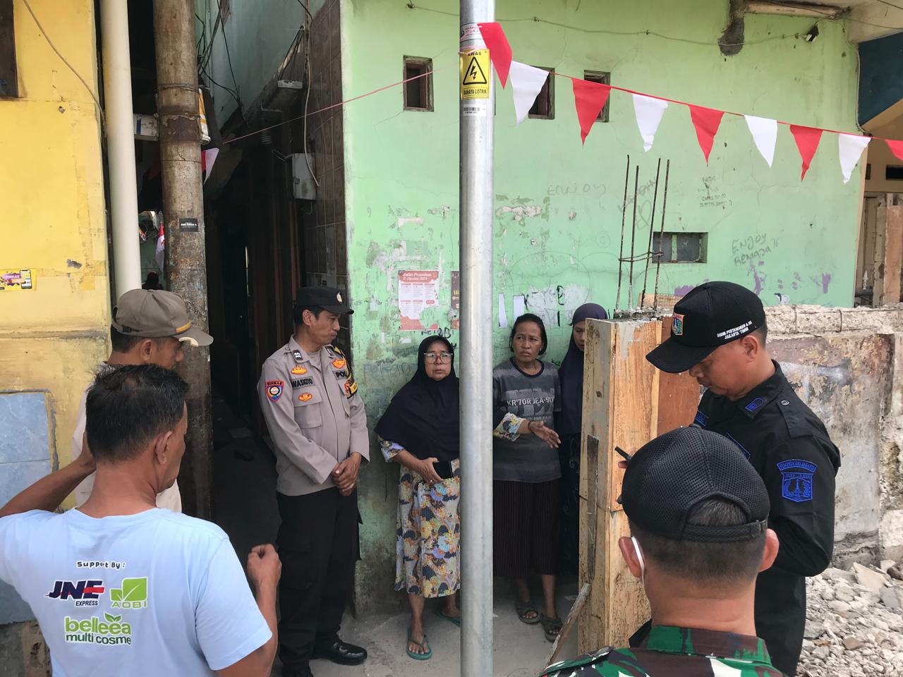Jakarta – Anggota Bhabinkamtibmas Kel. Cipinang Besar Utara, Polsek Jatinegara, Aiptu Waskito bersama 3 Pilar Babinsa dan Pol PP mendampingi melakukan giat pengecekan pemasangan pagar atau pintu sebagai pembatas Area TPU dengan warga. Selasa (13/08/2024)