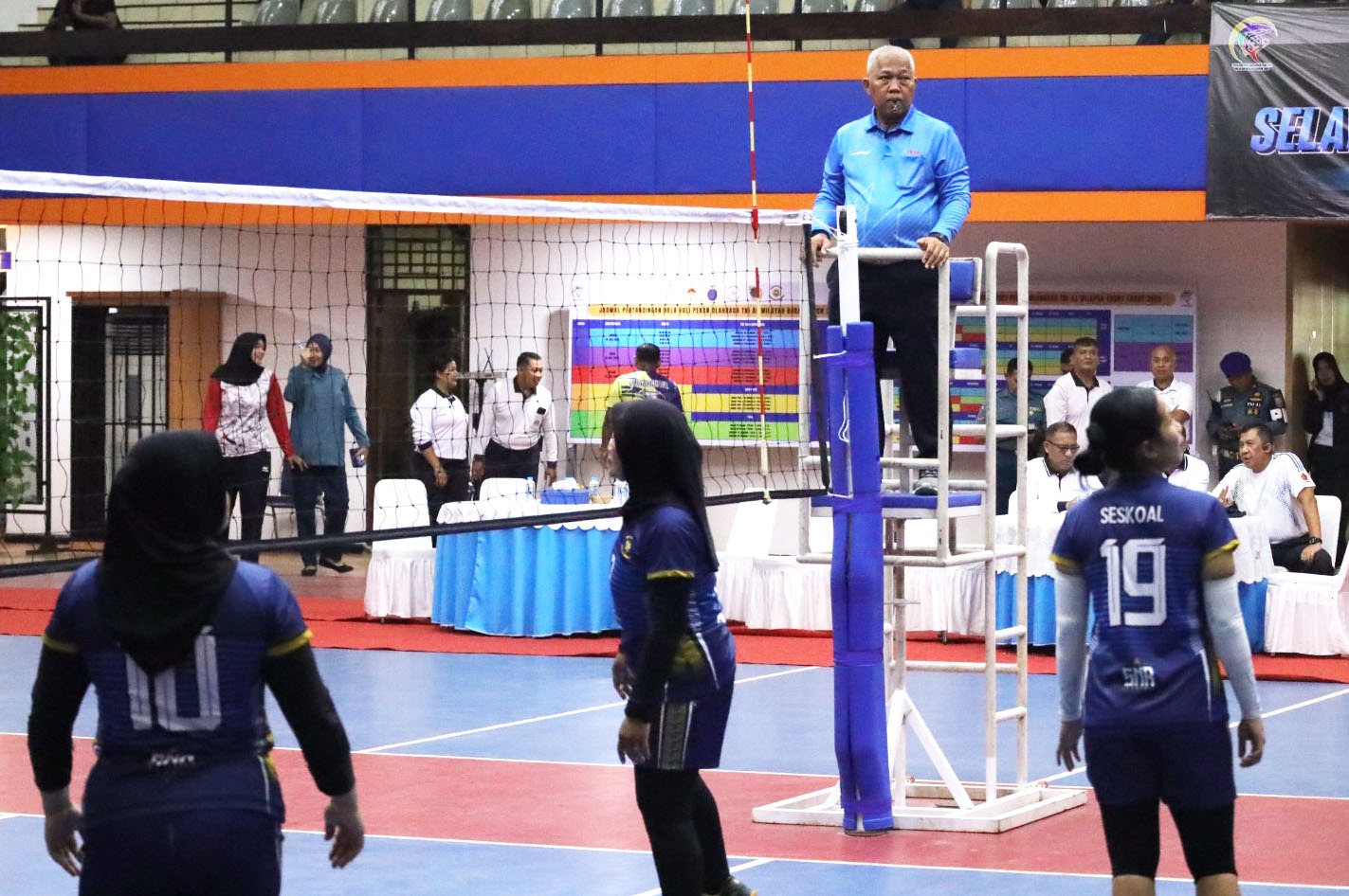 Hari kedua pelaksanaan Pekan Olah Raga TNI Angkatan Laut (Poral) Wilayah Barat (Wilbar), tim bola voli putri Sekolah Staf dan Komando Angkatan Laut (Seskoal) berhasil melaju ke babak semi final usai menumbangkan tim bola voli Pushidrosal dengan skor 2:0, bertempat di GOR Serbaguna Denma Mabesal, Cilangkap, Jakarta Timur, Selasa (22/7/2025).