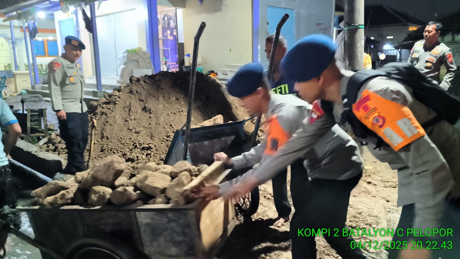 Selanjutnya, pada pukul 20.45 WIB, patroli dilanjutkan ke Desa Eretan Kulon. Air banjir juga terlihat mulai surut, namun masih setinggi mata kaki. Tim turut memantau aktivitas warga yang tengah mengangkut batu krikil untuk meninggikan lantai rumah sebagai langkah antisipasi terhadap potensi banjir susulan.