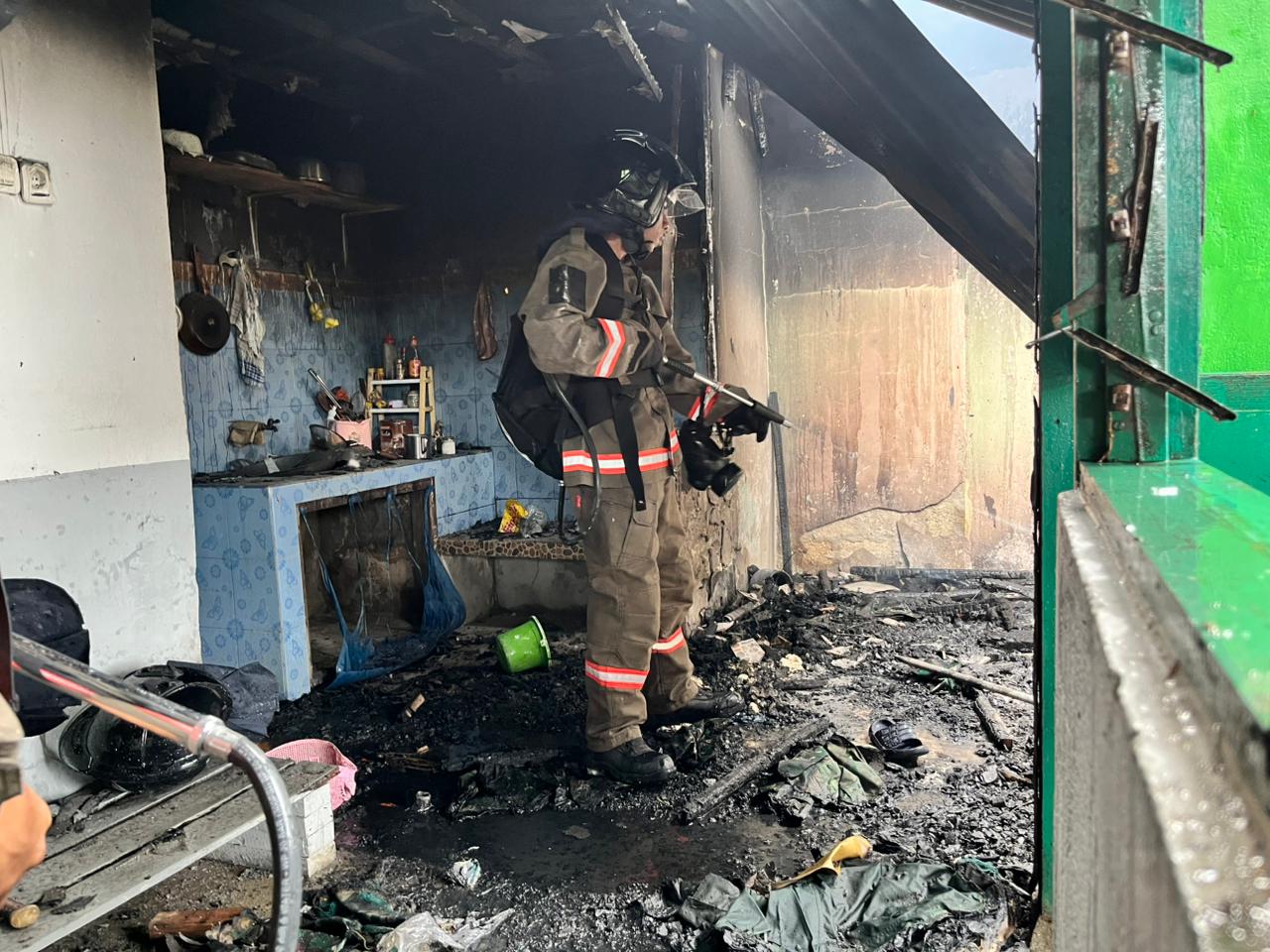 Berkat kerjasama antara petugas dan masyrakat setempat akhirnya si jago Merah berhasil dipadamkan