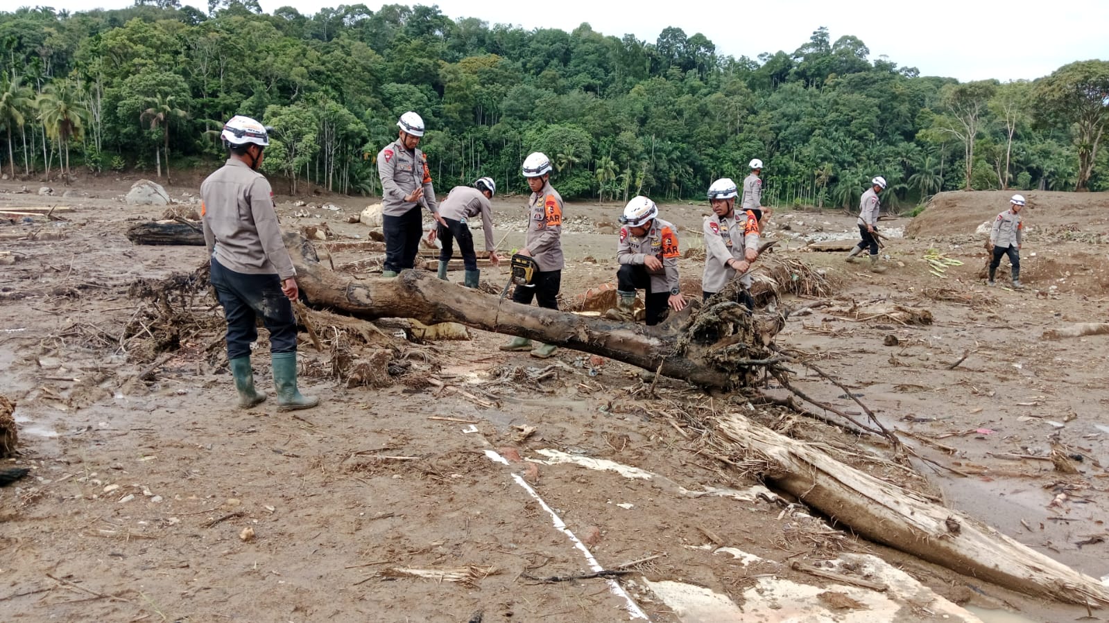 Sekitar pukul 08.45 WIB, tim SAR tiba di Desa Tanjung dan Desa Salareh Aia, Kecamatan Palambayan. Personel kemudian disebar ke beberapa lokasi, di antaranya pembersihan rumah warga, puing-puing material banjir di sekitar sekolah, serta permukiman di Jorong Kampung Tengah Timur. Kegiatan ini dipimpin oleh sejumlah perwira pengendali lapangan, di antaranya Iptu I Putu Astika dan Iptu Herman Agustinus Marini.