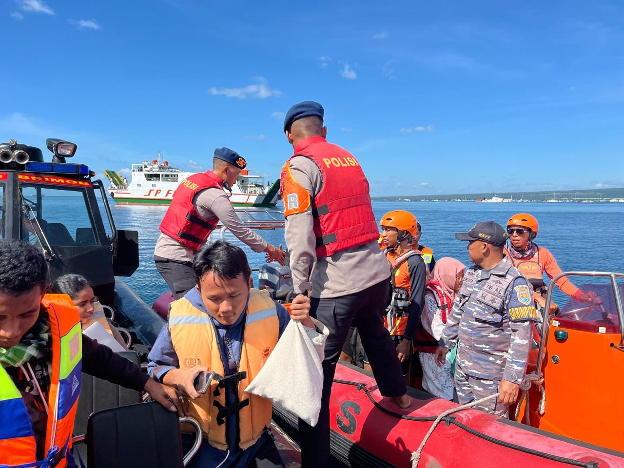 Jumlah Penumpang 77 orang dan Jumlah Kendaraan 32. Tim SAR menggunakan Sea Rider selanjutnya penumpang diantar ke Kantor VIP ASDP Pelabuhan Gilimanuk menggunakan truk Brimob. Jumlah penumpang yang di Evakuasi 45 orang dan 32 orang masih tetap bertahan di Kapal.