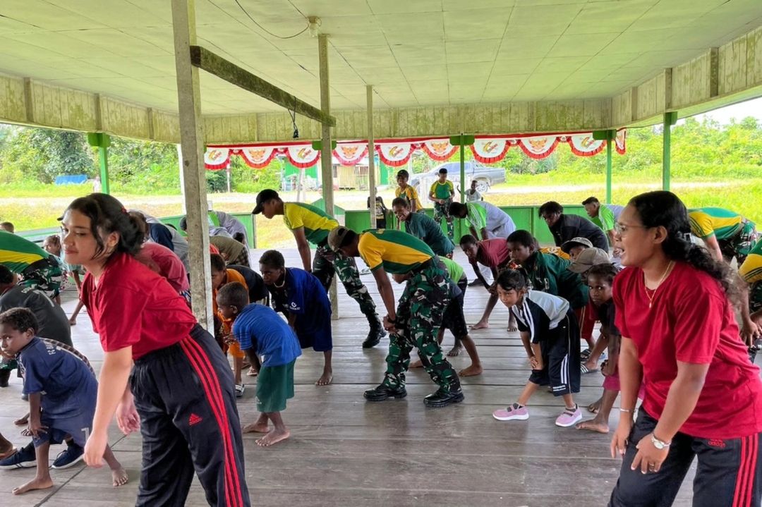 Tingkatkan Imunitas Tubuh Anak, Satgas Yonif 503 Kostrad Ajak Senam Bersama