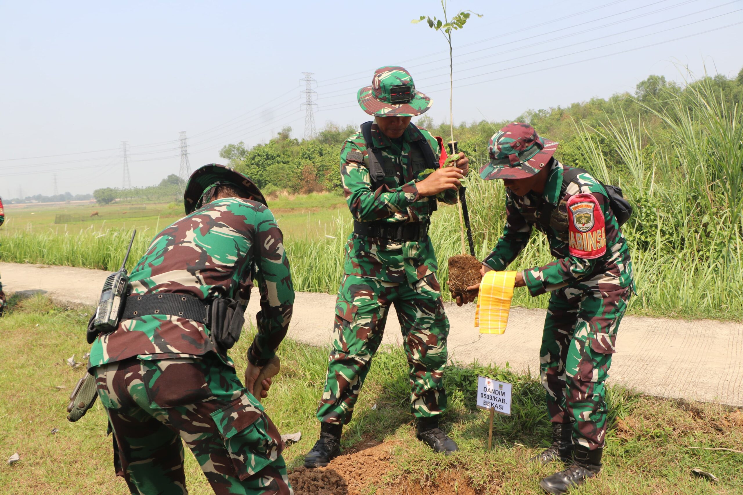 Usai upacara, Bupati Bekasi bersama jajaran Forkopimda melakukan penanaman pohon secara simbolis sebagai bentuk komitmen terhadap pelestarian lingkungan dan penghijauan desa.