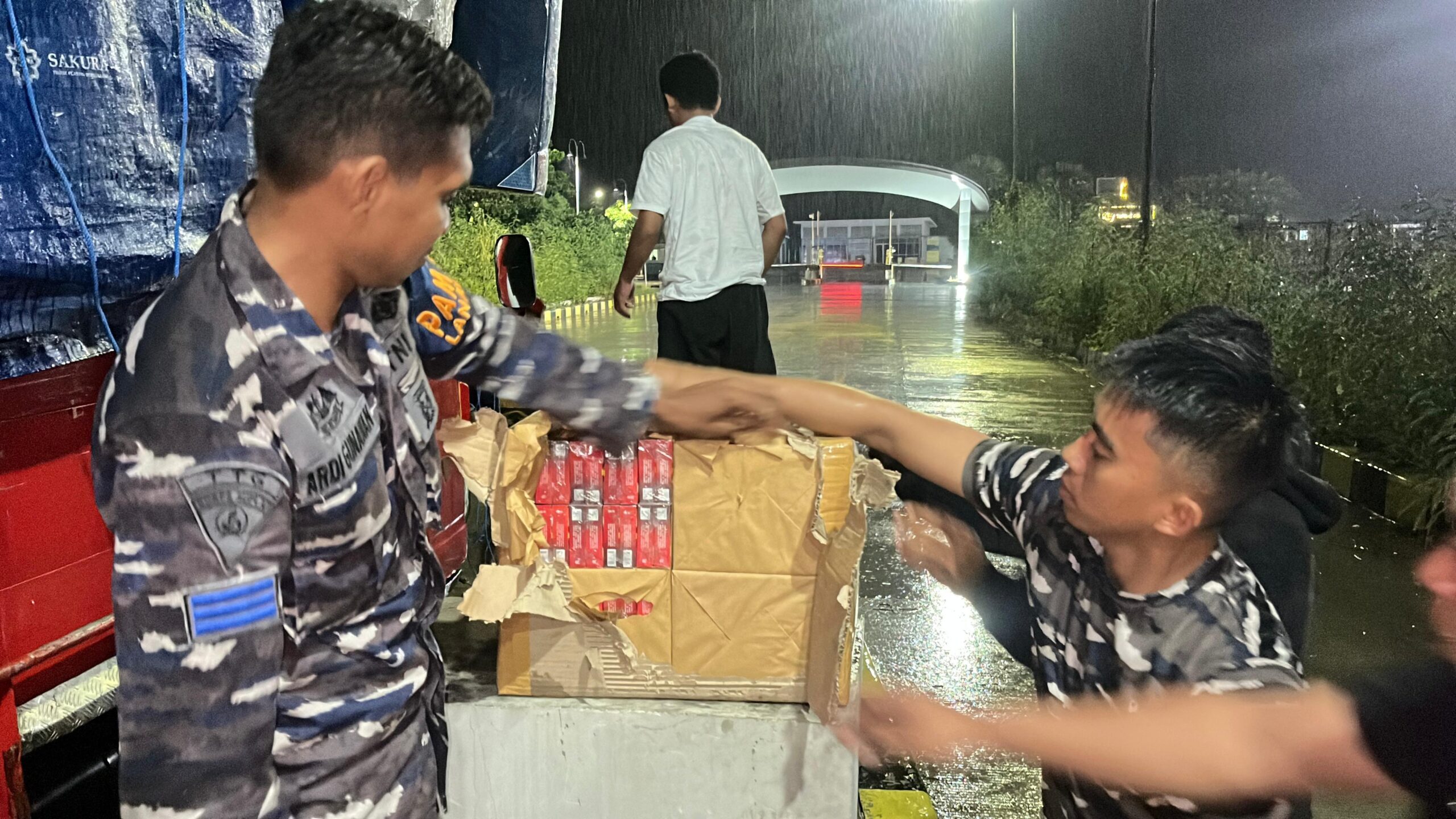 Setelah dilaksanakan pemeriksaan dan pengecekan isi muatan, didapati 80.000 batang rokok ilegal berbagai merk yang dikemas di kardus serta 14 unit sepeda motor tanpa dokumen lengkap yang tidak masuk ke dalam daftar muatan.