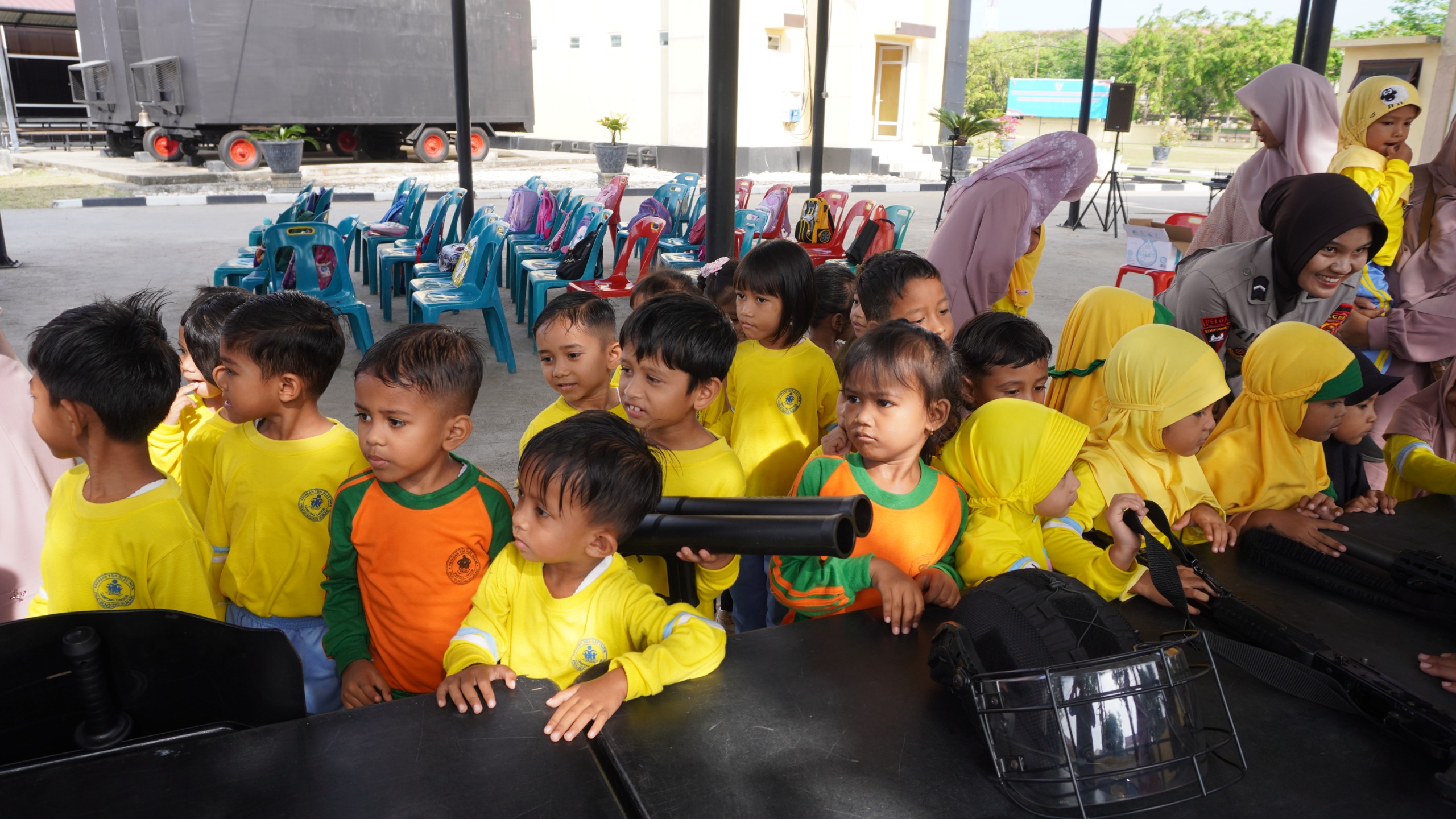 Tawa ceria dan rasa ingin tahu yang tinggi tampak dari wajah para peserta. Mereka tidak hanya belajar, tetapi juga merasakan langsung kedekatan dengan sosok aparat negara yang selama ini mereka kenal melalui cerita dan tayangan.