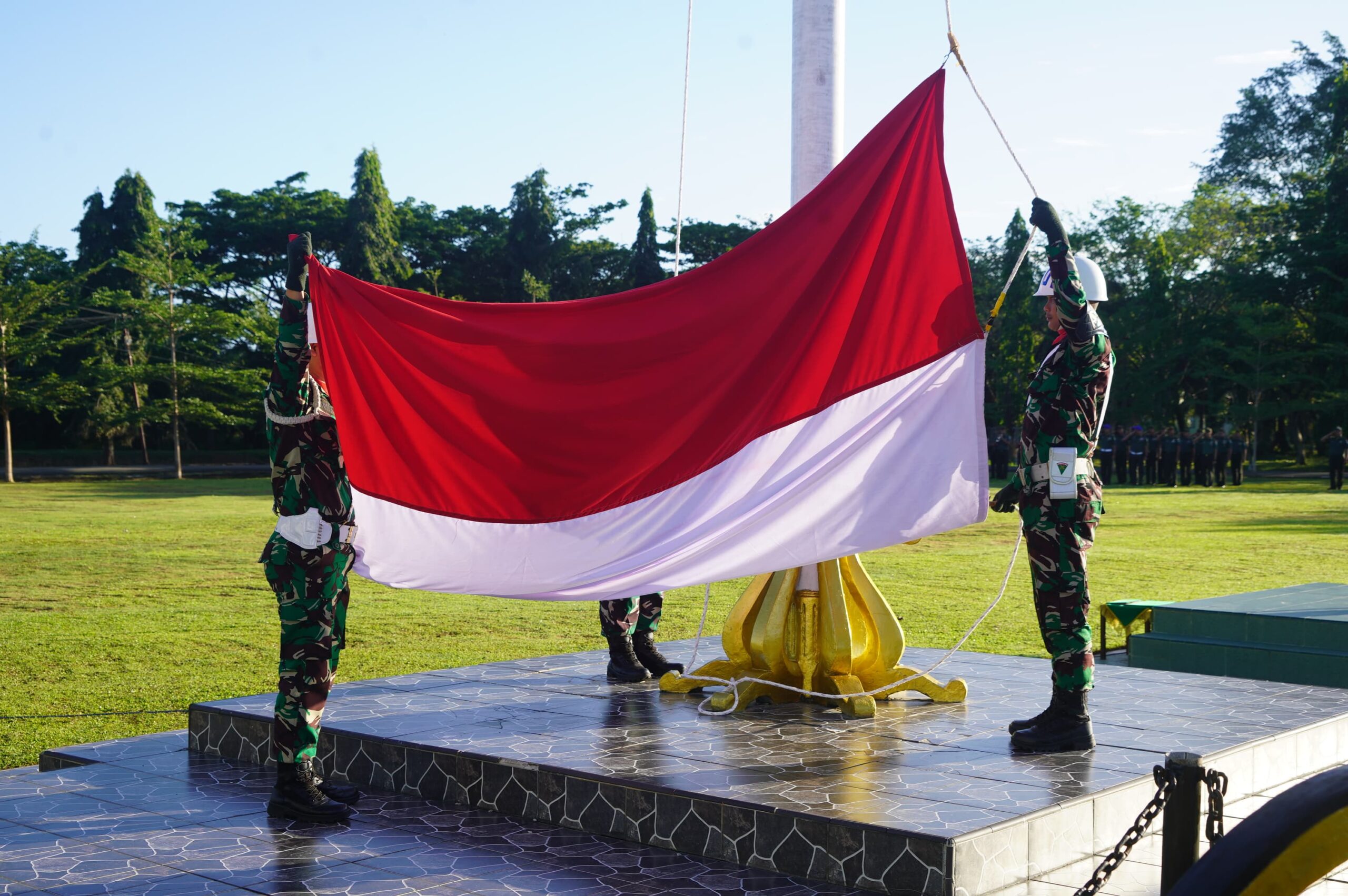 Dalam amanatnya, Letkol Cba Didi Purnomo membacakan sambutan Kasad Jenderal TNI Maruli Simanjuntak, M.Sc., yang menegaskan bahwa upacara 17-an bukan sekadar rutinitas, melainkan refleksi dedikasi, integritas, dan tanggung jawab prajurit sebagai penjaga kedaulatan bangsa.