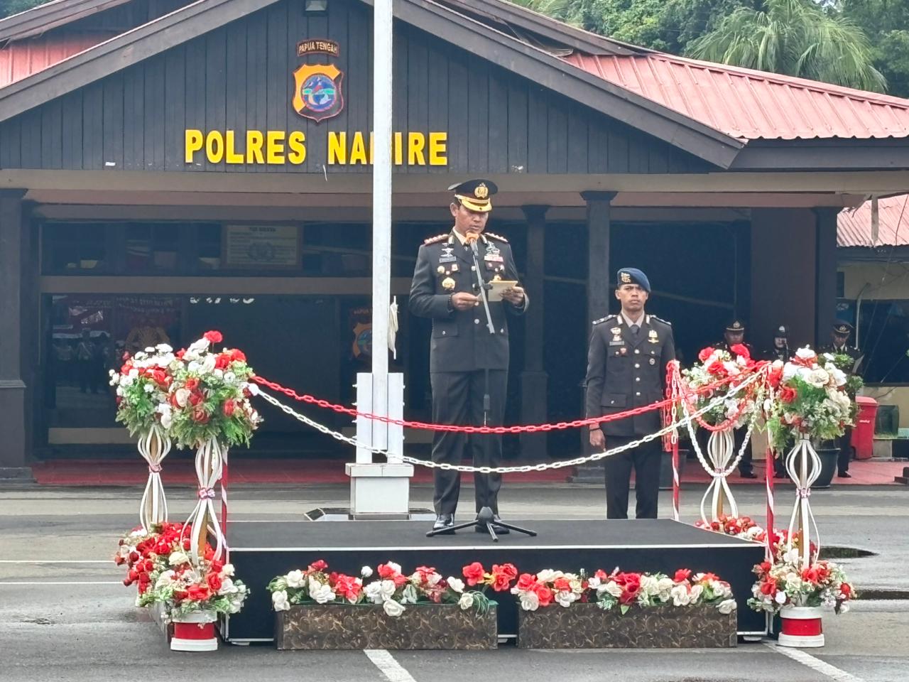 Nabire –Dansat Brimob Polda Papua Tengah Kombes Pol Ahmad Nurman Ismail, S.I.K. Turut serta menghadiri upacara peringatan Hari Sumpah Pemuda ke-97 yang diselenggarakan secara khidmat di Mapolres Nabire, Kab. Nabire, Prov. Papua Tengah, Selasa 28 Oktober 2025.