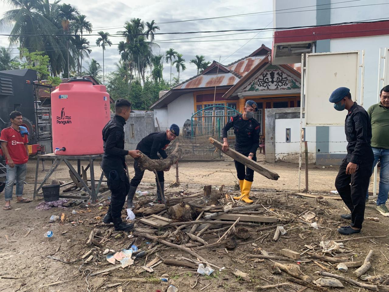 UPAYA PEMULIHAN, BRIMOB ACEH BANTU BERSIHKAN MEUNASAH DI BLANG CUT