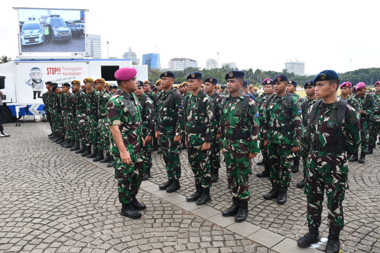 Apel dipimpin langsung oleh Kapolri Jenderal Pol. Listyo Sigit Prabowo dan Panglima TNI Jenderal TNI Agus Subiyanto. Adapun rangkaian apel dimulai dengan penyematan pita tanda operasi kepada perwakilan personel Satuan Polisi Pamong Praja (Satpol PP), Dinas Perhubungan, Korps Lalu Lintas (Korlantas) Polri, dan Polisi Militer (PM).