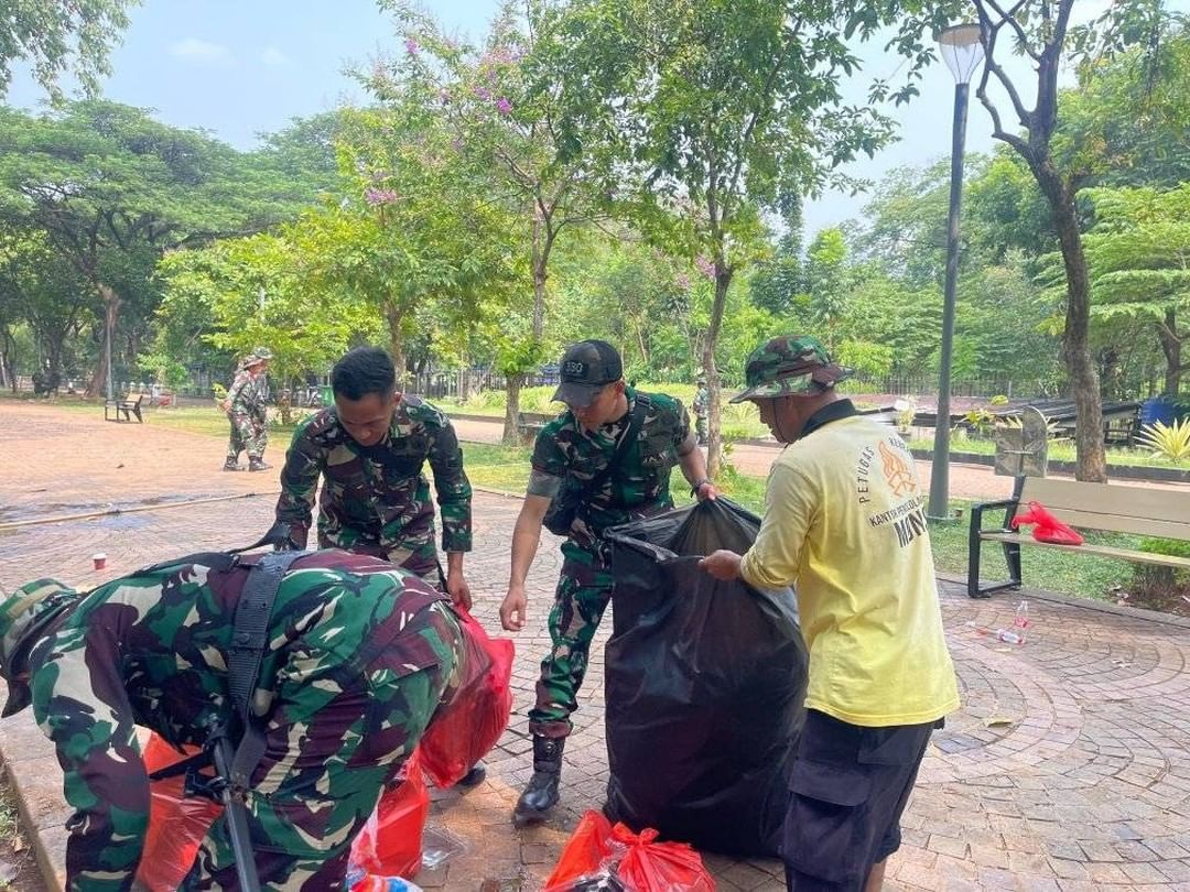 Jakarta. Dimanapun berada, kehadiran prajurit Yonif 330 Tri Dharma selalu membawa energi positif dan menginspirasi banyak pihak. Seperti yang terlihat saat para Ksatria Tri Dharma membantu meringankan tugas para petugas kebersihan dengan melaksanakan pembersihan di lingkungan lapangan silang Monas, Gambir, Jakarta Pusat, Kamis (26/9/2024).