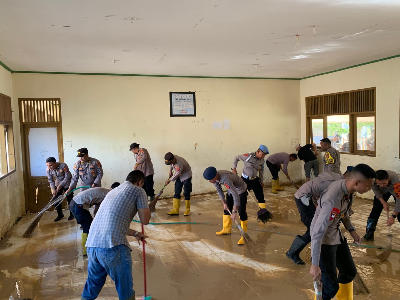 Pembersihan dilakukan dengan menyasar ruang kelas, halaman sekolah, serta fasilitas pendukung lainnya yang terdampak material lumpur dan sampah akibat bencana. Personel Brimob tampak bergotong royong membersihkan lingkungan sekolah guna mempercepat pemulihan dan mendukung kelancaran proses belajar mengajar.